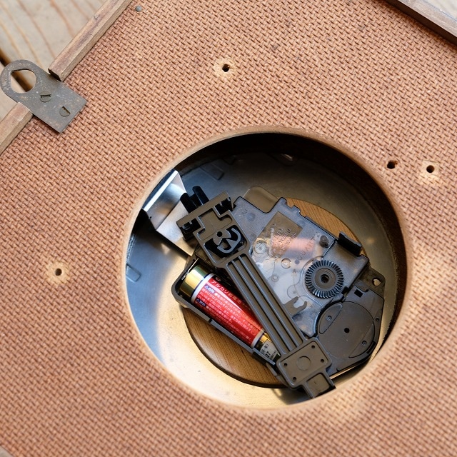 黒のパーツは、この角度で刺し込んで取付します。振り子を取り付けたら、少し揺らすと、左右に振れます。