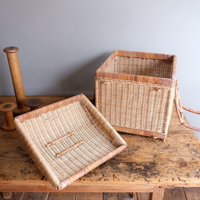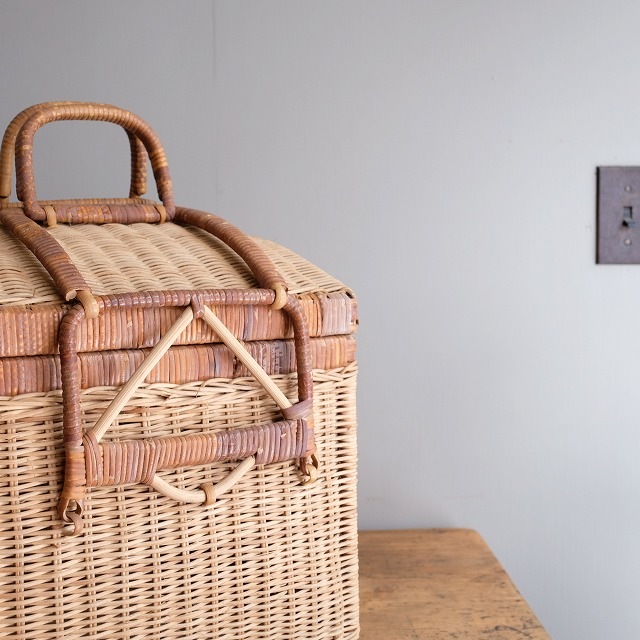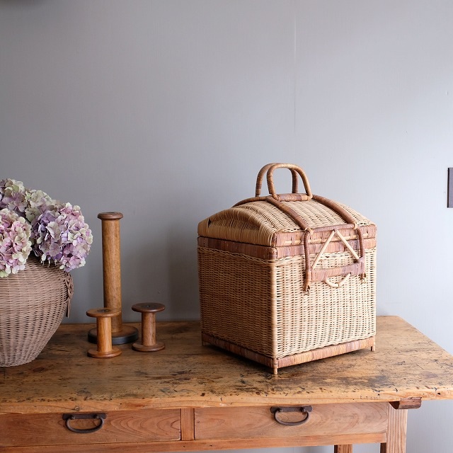 上部が丸く、正方形という、あまり見かけない形のバスケットです。