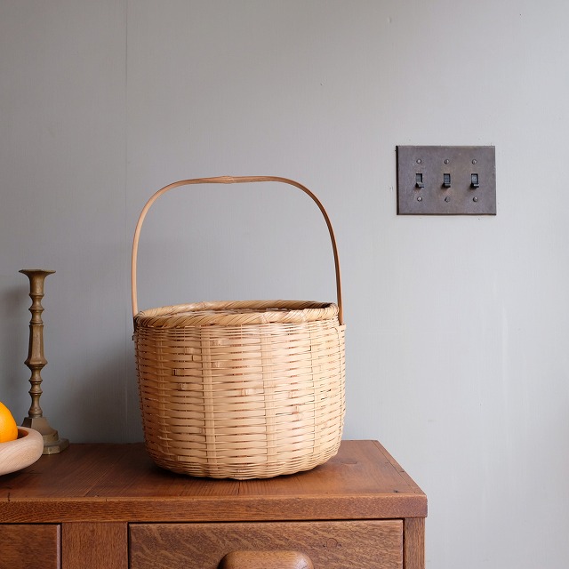 太くて丈夫な竹で、カチッとした籠という印象です。
