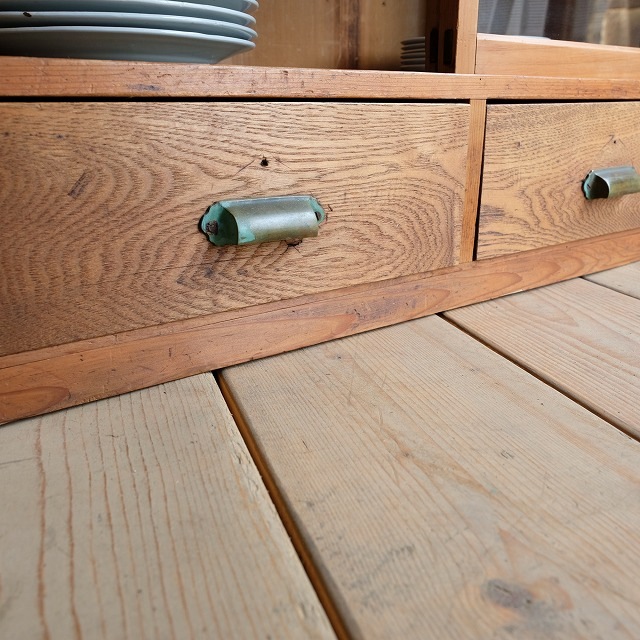 古びた真鍮製の取っ手、マットな質感や緑青が出て雰囲気があります。