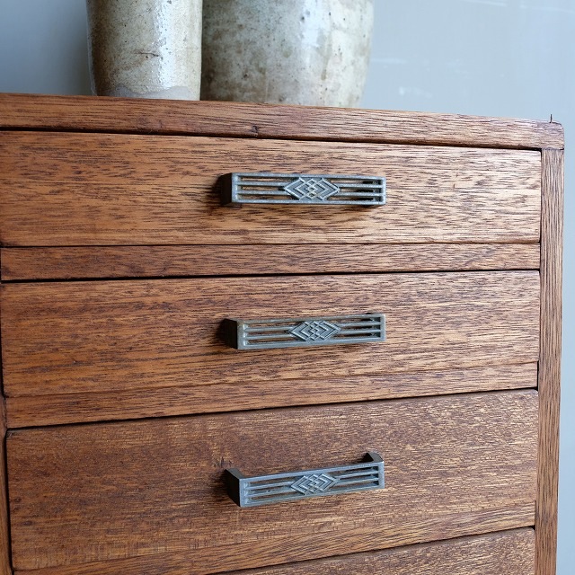 菱形モチーフの取っ手、透かしがありデザイン性に富んだ金具ですね。