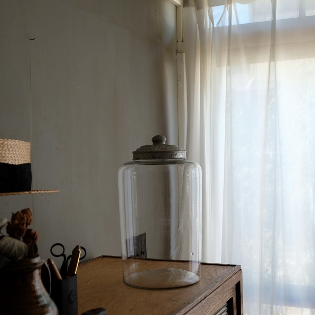 アルミの蓋がレトロな保存瓶です。何を入れてもオシャレに保存できますね。古いガラスが魅力です。