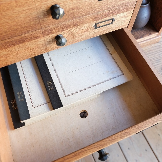 レコードや紙類を取り出しやすくするために丸い穴が空いています。