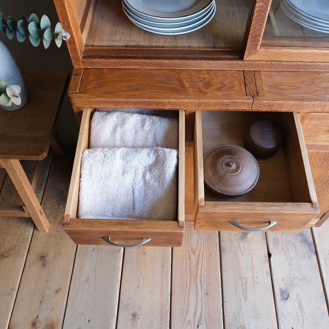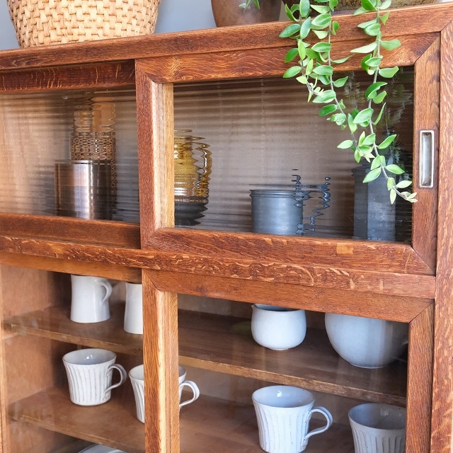 2種類のガラスが使われていますので、お気に入りの食器は見せて収納など使い分けができます。
