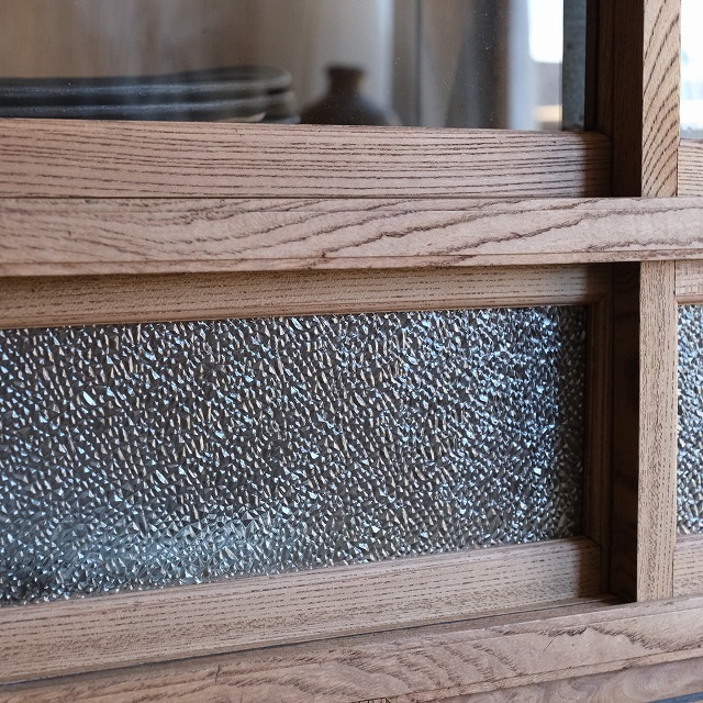 小さなダイヤガラスの棚、表面が凹凸面になっていることにより装飾性が高くなっています。
