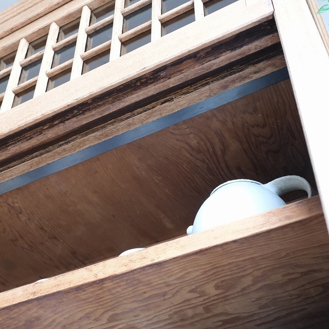 大きな食器棚ですので、木の反り防止と強度を確保するため、一部に鉄を入れて修繕しました。(前面から見えない場所です。)