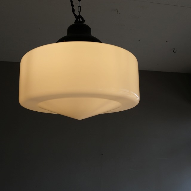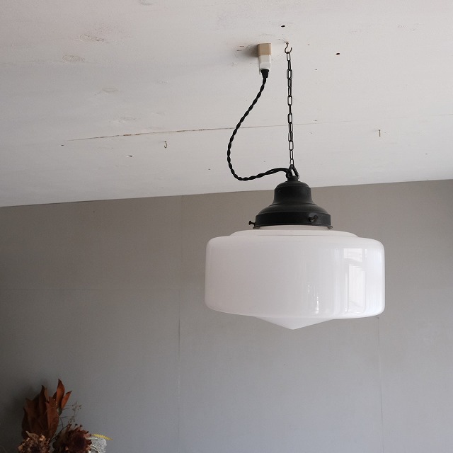 古いガラスシェードは少しいびつな場合があるため、金具の取り付け場所によって、少し傾く場合があります。