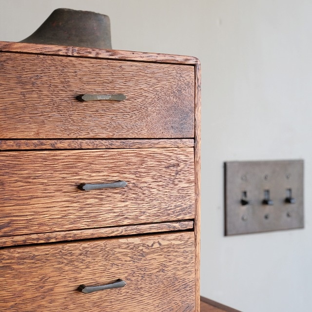 小さなサイズの引き出しは、見た目だけでもオブジェなります。温かみを感じる無垢の引き出しです。シンプルな取っ手ですので、色々なお部屋に合わせやすいです。