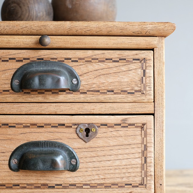 このトレーは引き出しの中から一時的に取り出したい物を置くための構造だったと思います。細かな作業をする方にとって、機能的な引き出しです。