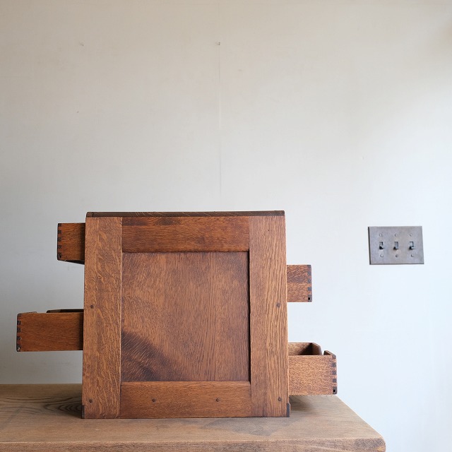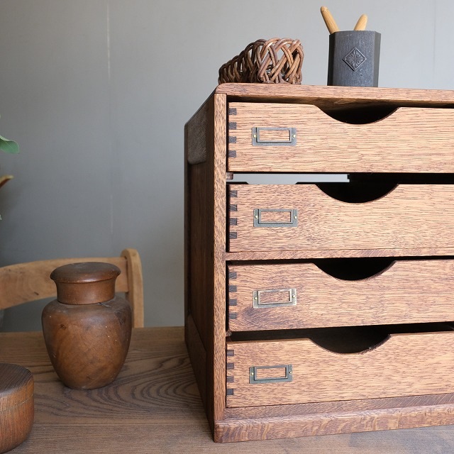 引き出し面の中央が窪んだ形をしています。ここを持って引き出せる構造です。取っ手がない分すっきりとしています。