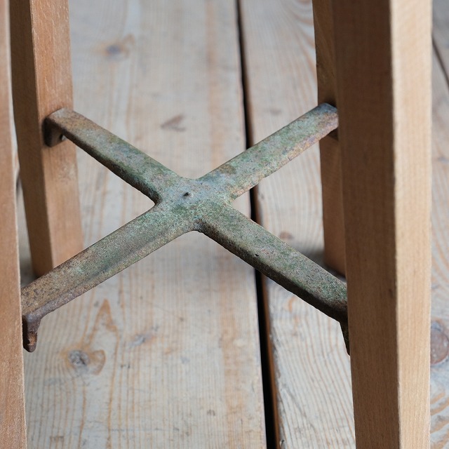 鉄製クロスが付いた、異素材コンビの丸椅子。主張しすぎない個性で、普通の丸椅子と差を付けたい方におすすめです。