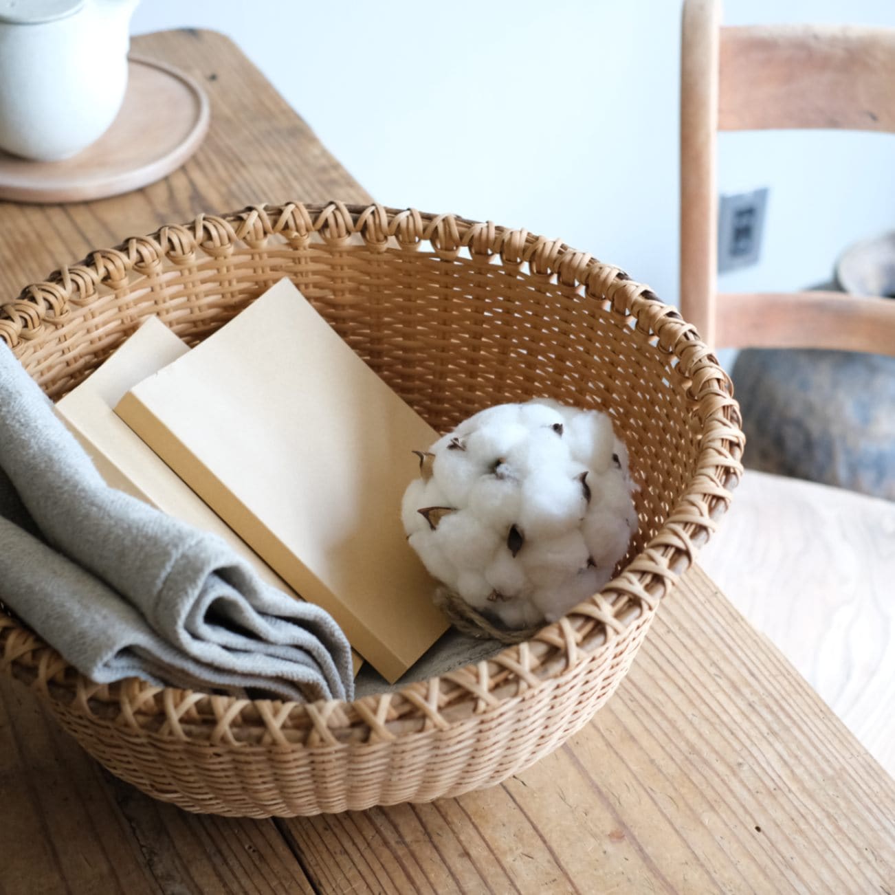 大きめなサイズのまたたび笊、ざっくりとラフ収納に。