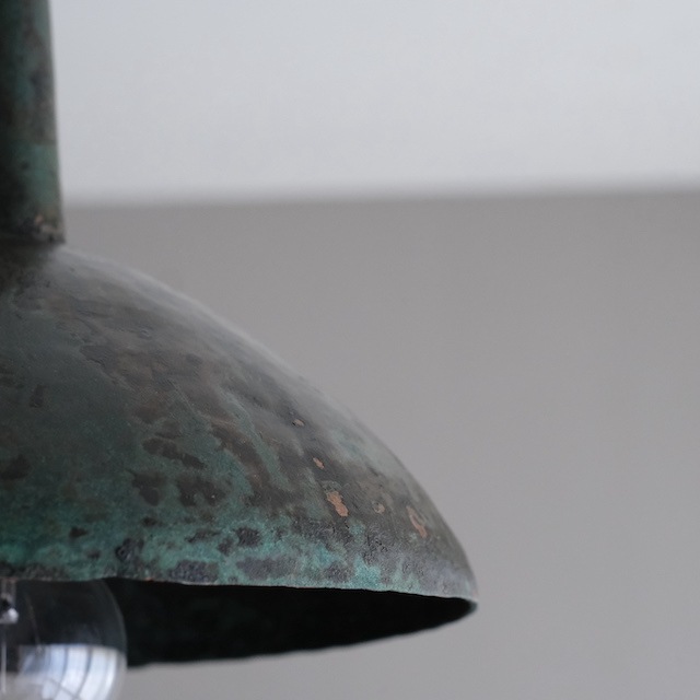 古い銅の漏斗のペンダント照明です。シンプルで無骨で、味わい深い、古銅にはそんな魅力があります。口金E26 電球は付属しません。※ソケット、配線、引っ掛けシーリングはPSE対応の新品に交換しています。