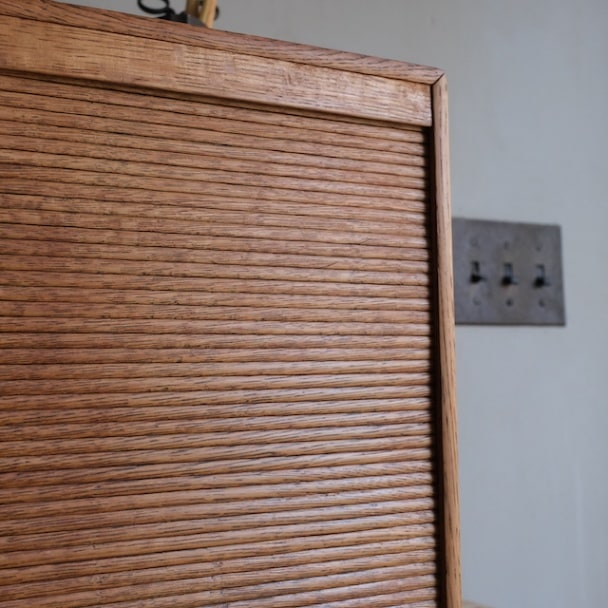 扉を開けることが楽しくなる蛇腹扉。閉じた状態でも蛇腹の美しさが際立ちます。扉が閉まっている時はすっきりとしていて、開けた状態のままでも造りの良さが窺えます。表情の違いが愉しめるワンランク上の引き出しをお愉しみください。A4用紙入ります。