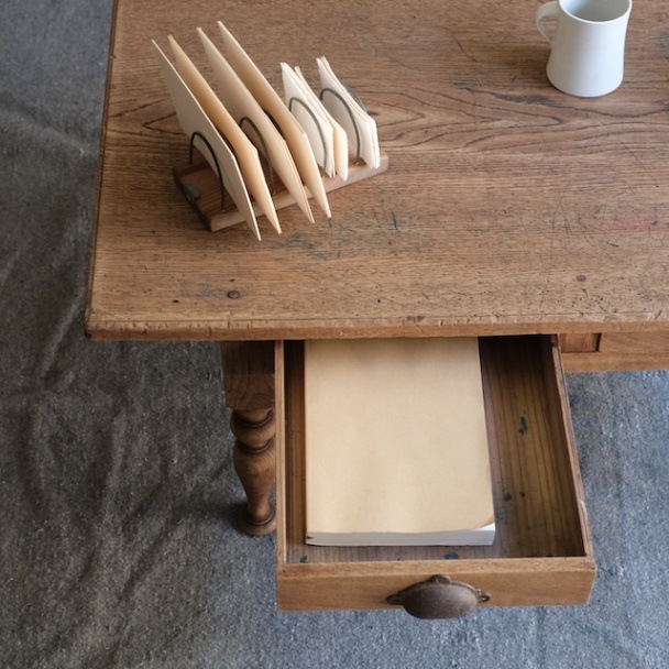 古い塗装を剥がした無塗装仕上げです。木地そのままのナチュラルな風合いです。