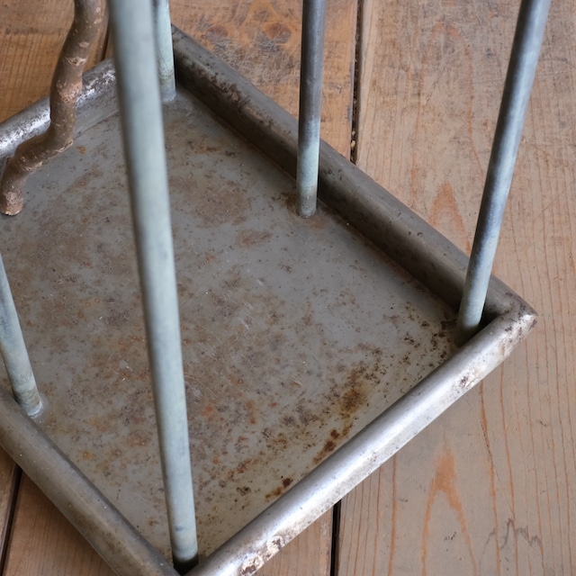 シンプルな形の真鍮製傘立て。経年変化して、緑青と錆の風合いが出ていいます。
