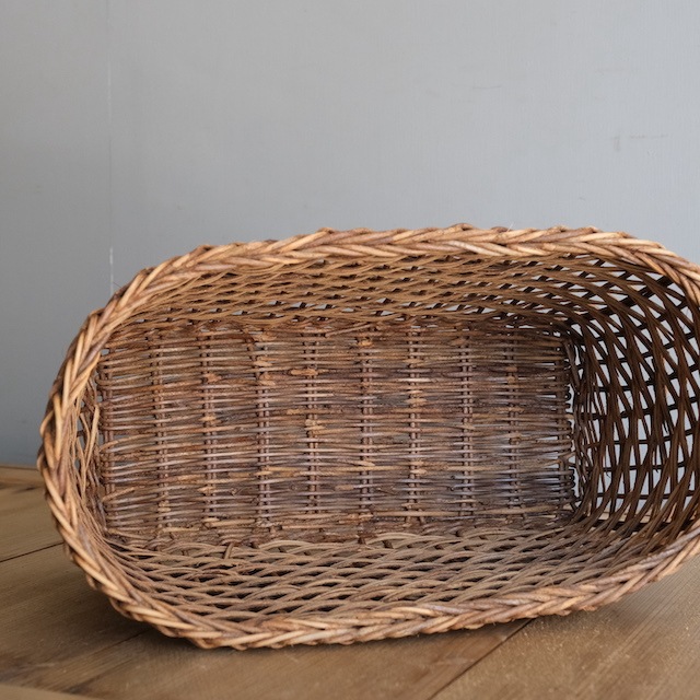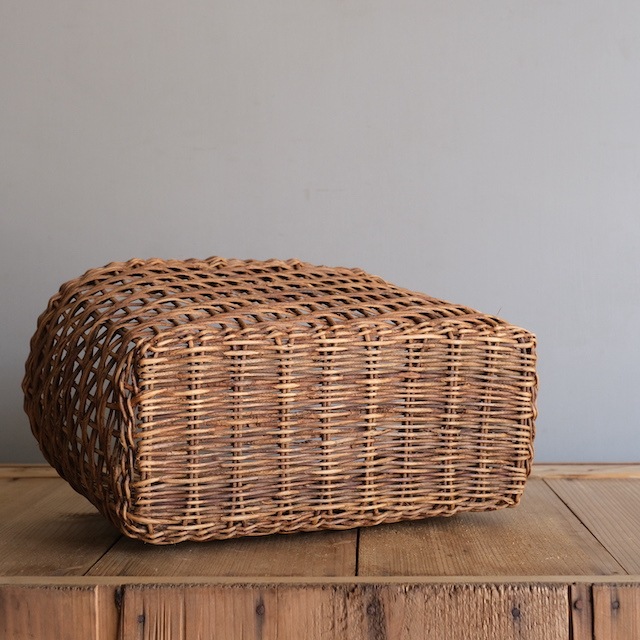 あけび蔓で編んだ籠。斜めラインのように見える立体的な編み方が特徴のホラ編みです。雑誌を入れたり、日常生活に取り入れやすい形です。
