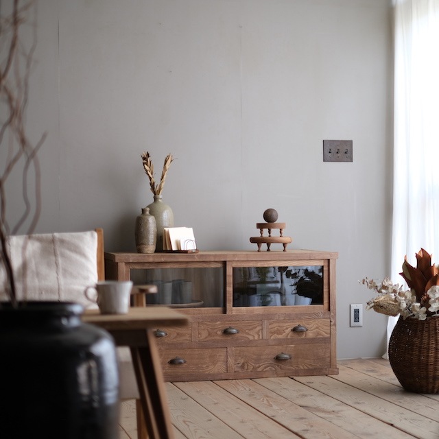 引き戸+引き出しのローキャビネット