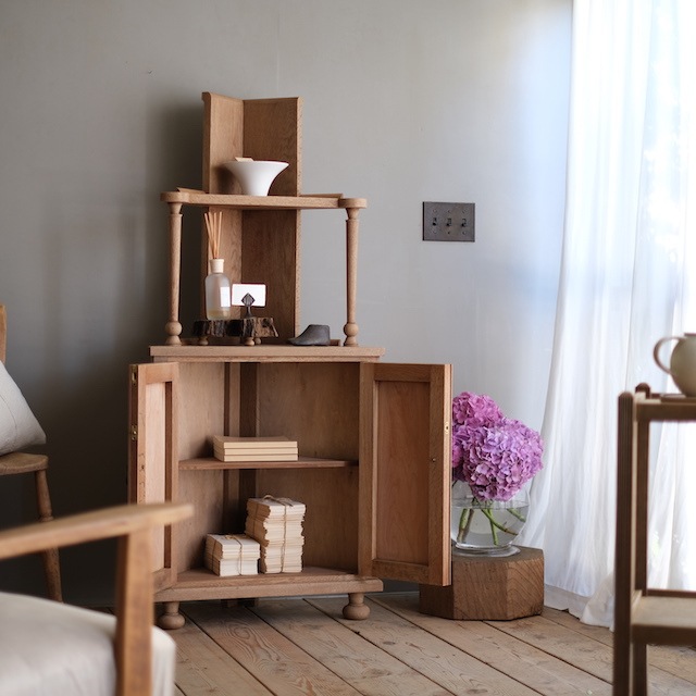 こちらは古い塗装を剥がした無塗装仕上げです。木地そのままのナチュラルな風合いが魅力です。