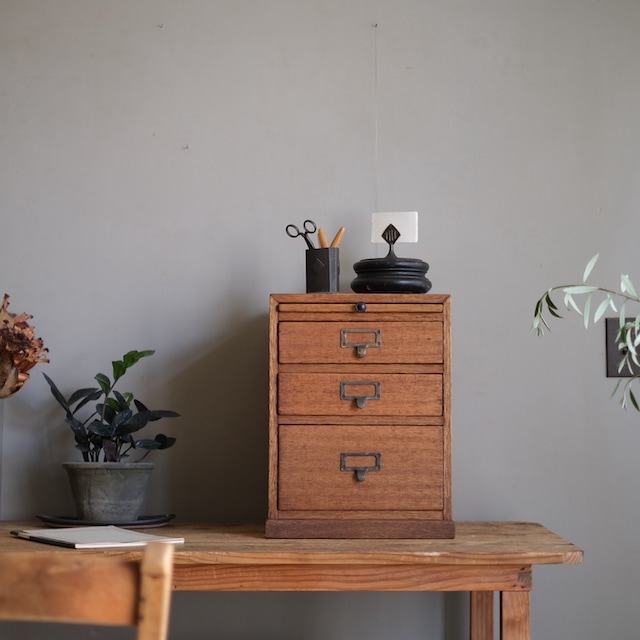 上部に出し入れできるトレーが付いた希少な引き出し。必要な時にサブ用の台として、アトリエのような創作活動の場で重宝します。A4用紙が入ります。