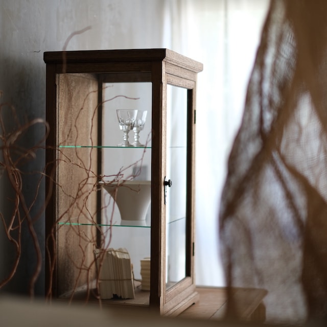 側面と天板がガラスになっているので光が入り、中の物を明るく綺麗に見せてくれます