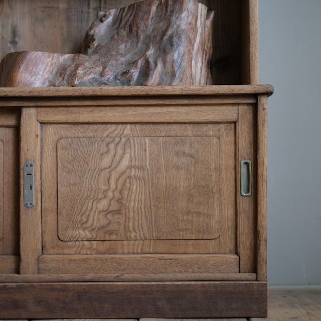 素敵に飾ることができるシェルフ、上部にはお気に入りの本や雑貨を飾り、下部の引き戸には見せたくない日用品を収納することができます。棚の高さは下に行くほどスペースが広くなっていますので、立体的な飾りが楽しめます。