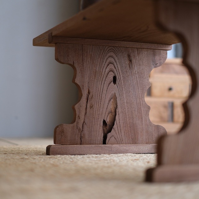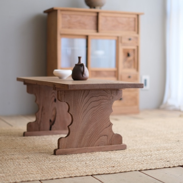 欅のローテーブル。脚のくびれた形状が美しいです。昔の読み書きををしていた机、ローテーブルとして、展示台としていかがでしょうか
