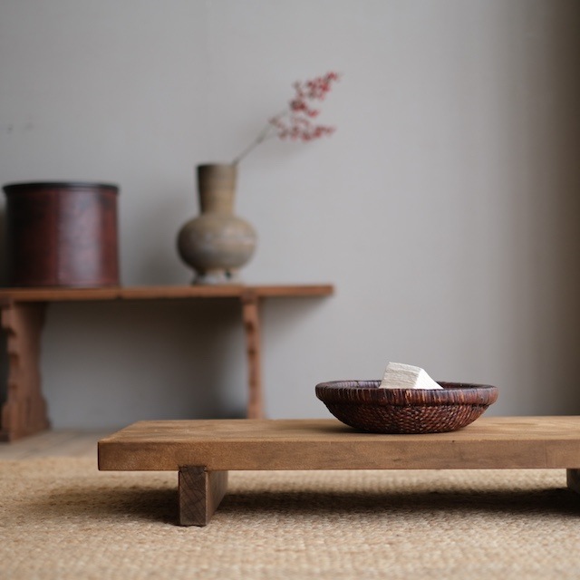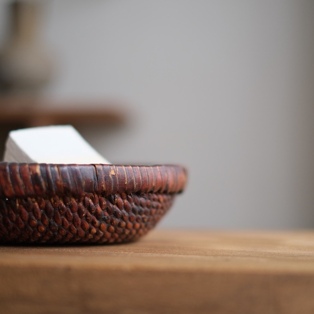 ぽこぽことした編み方が可愛い籠。味わいのあるプリミティブな佇まいです。