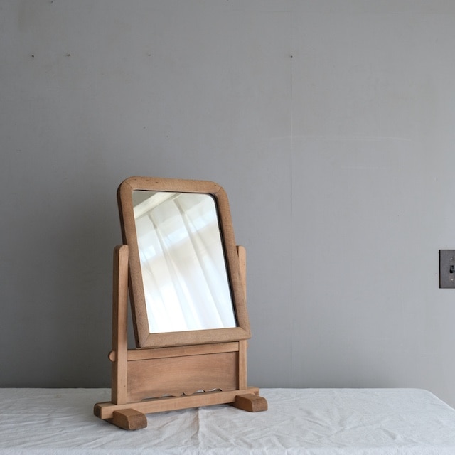 趣のある卓上ミラー。古い塗装を剥ぎ、ナチュラルな木肌に仕上げました。昔ながらのデザインは今も変わらぬ美しさがあります。