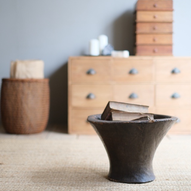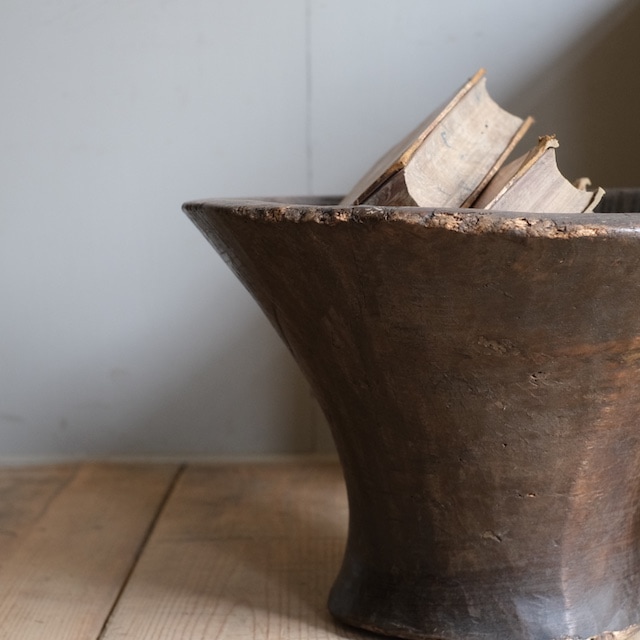 美しいくびれのウッドボウル。深い色味と無骨な作りでとても雰囲気があります。