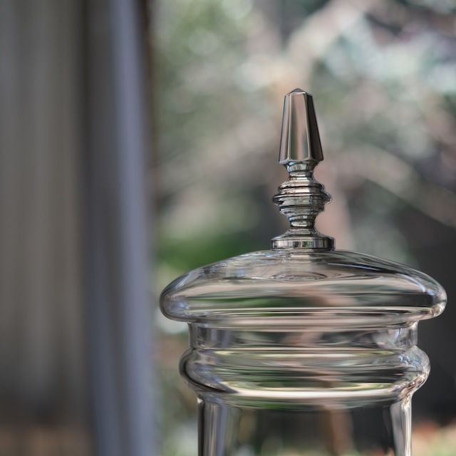 素敵なフォルムの保存瓶。とてもデザイン性のある美しいシルエットのガラス瓶です。