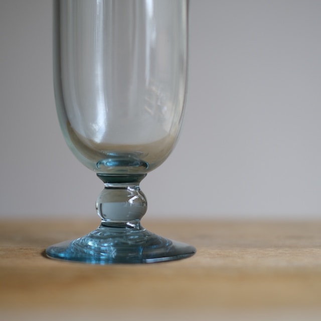 絵になるシルエットが美しいガラス瓶。青緑色をしています。頭から足の先まで、どこを切り取っても美しいガラス瓶です。