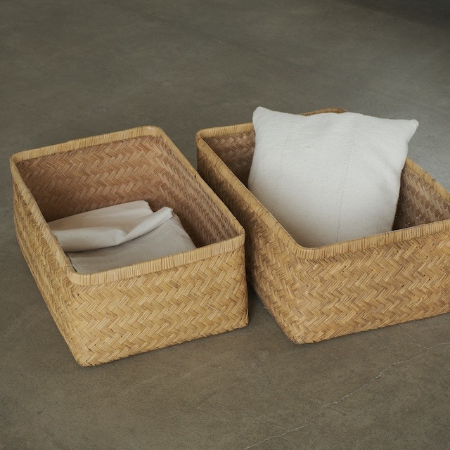 ぴったりと合わせることができる行李は様々なサイズがあります。自然素材でできているため、通気性が良く、見た目の温かみを与えてくれます。見せる収納にも最適ですね。二つ並べて、収納を倍にしてもいいですね。