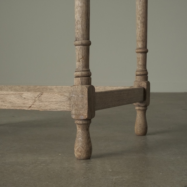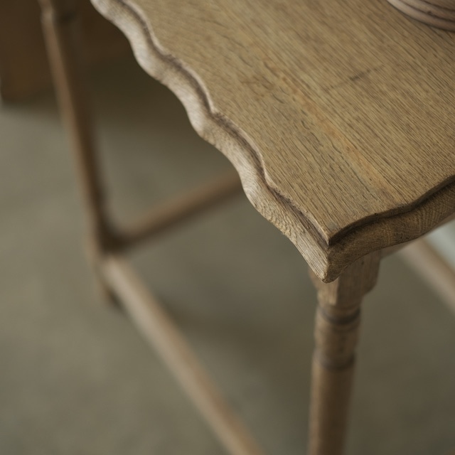 波打つような柔らかな縁取りが特徴的な天板に、ろくろ脚が印象的なアンティークのサイドテーブル。