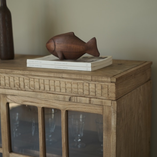 実用性を備えたスライド扉で、日用品から器、雑貨まで幅広く収納可能。上部の天板には雑誌や小物を置いて、空間全体を心地よく演出できます。