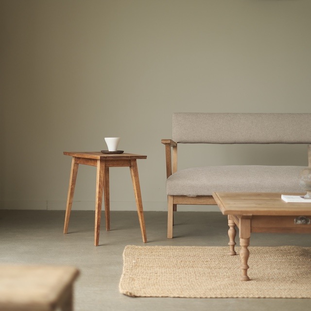 ソファ横やベッドサイドで、カップや本を置くのにちょうどよいサイズ感です。