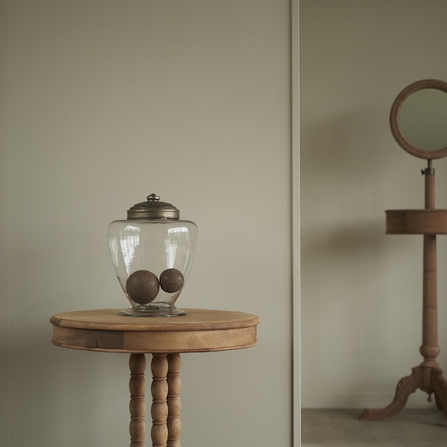 縦にすっと伸びた姿が印象的な、足付きのガラス瓶。 手拭きガラスならではのやわらかな揺らぎが、光を優しく受け止めます。 何を収めても、上品な佇まいで包み込んでくれます。