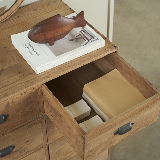 引き出しは日用品や文具、小物をしまうのにちょうどよいサイズ感で、日々の生活に気持ちよく寄り添います。