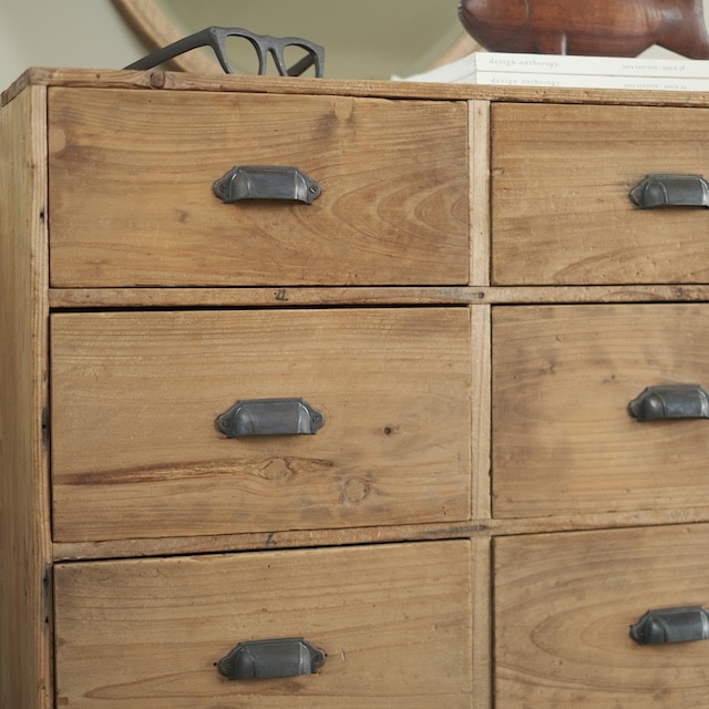 自然な木肌があたたかく、素朴な魅力を持つ8杯のチェスト。