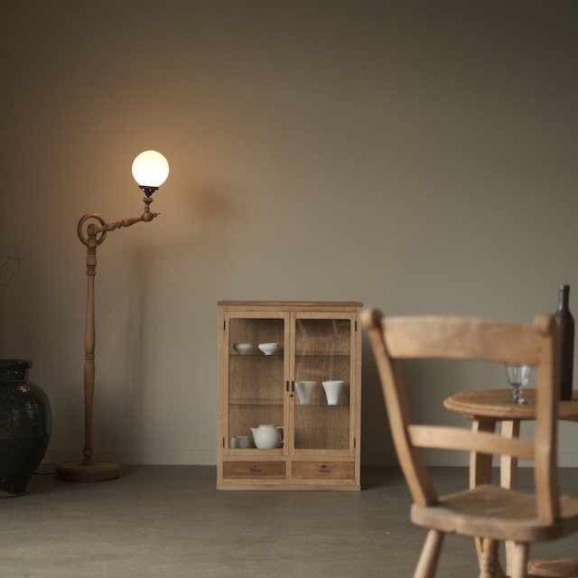 下部には小引き出しが二杯備わり、見せる収納と隠す収納を両立。キャビネットの実用性とショーケースの美しさを兼ね備えた一台となっています。