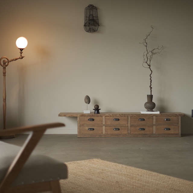 低く、静かに構えることで空間全体を引き立てる、そんな役割を担うローチェストです。