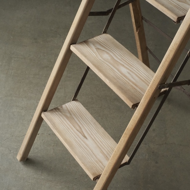 木と鉄でつくられた折りたたみ脚立。