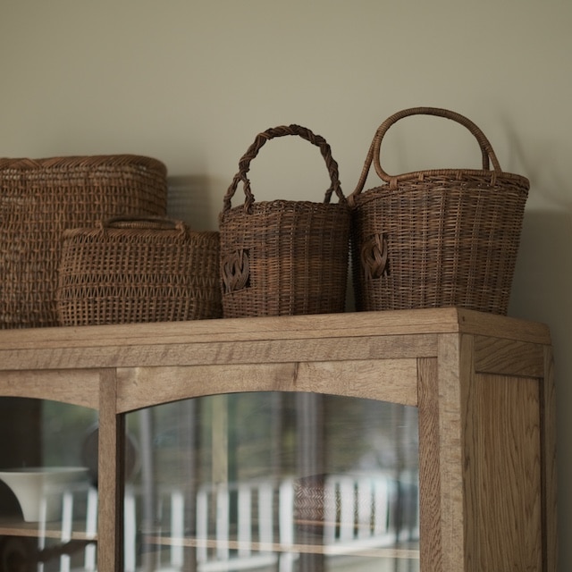 器やかご、布ものを分けて収めることで、