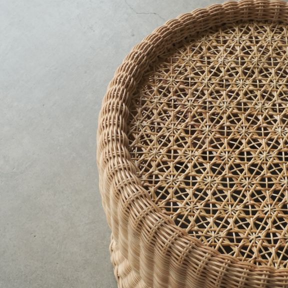 ラタンを緻密に編み上げた「麻の葉編み」の天板に、