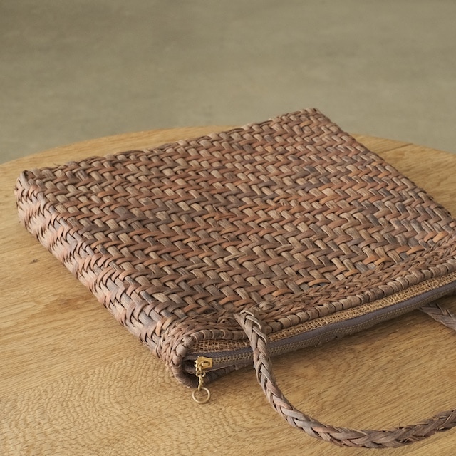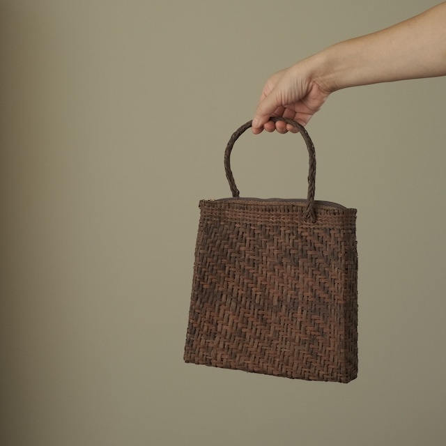 網代編みで仕立てられた、薄づくりの山葡萄の手提げかご。
