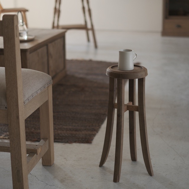 細くしなやかに伸びる脚と、柔らかな丸みを帯びた天板が愛らしい小さな台。