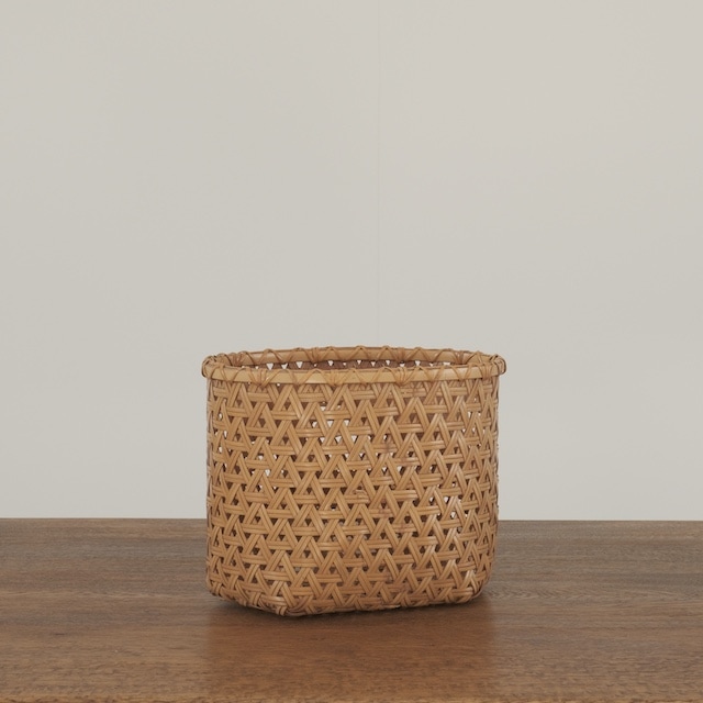 亀甲編みの技法で丁寧に編み上げられた竹籠。