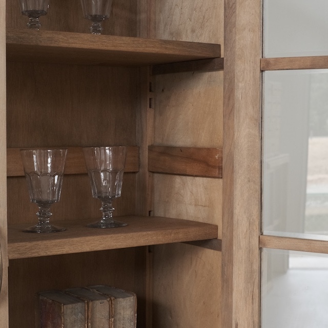 ガラス越しに見える器や本は、輪郭がやわらぎ、どこか品のある印象に。