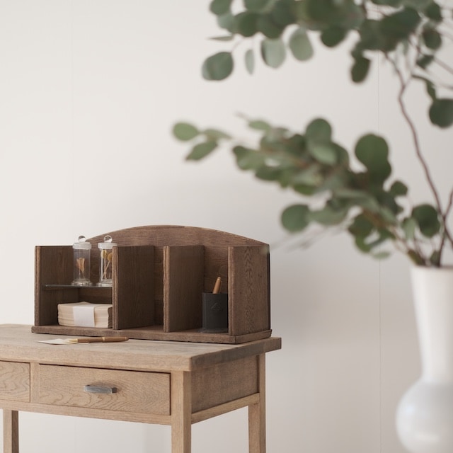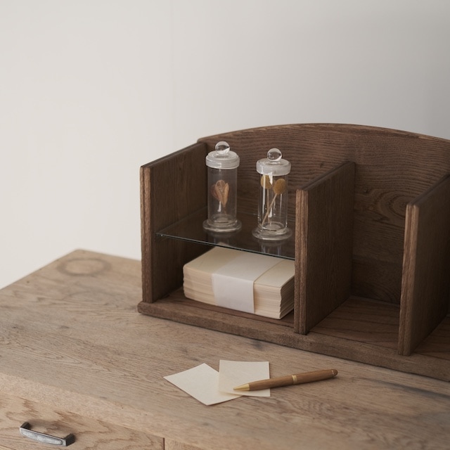 卓上に置いたときも圧迫感がなく、書き物の道具や愛用の文具が静かに映えます。