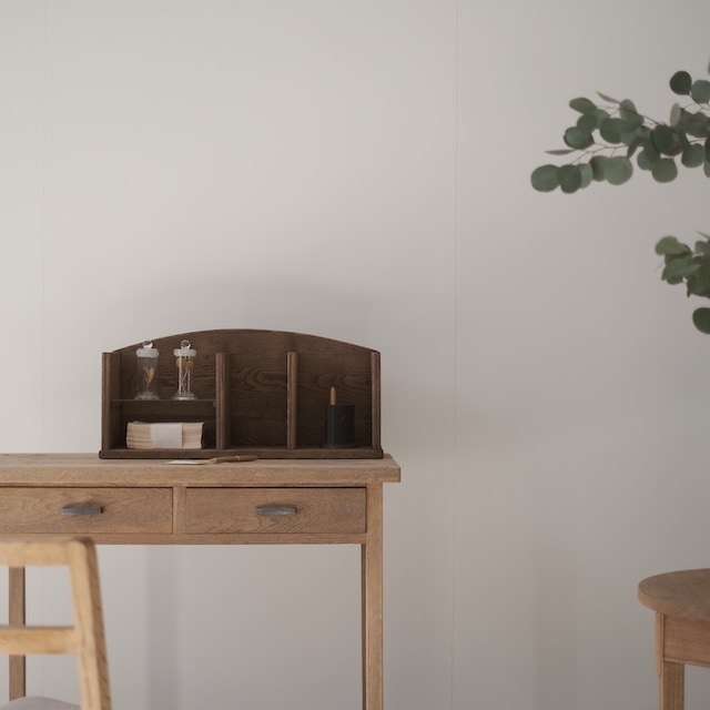 仕切りごとに設けられた構造が、紙ものや小物を自然に受け止め、整った佇まいを保ちます。